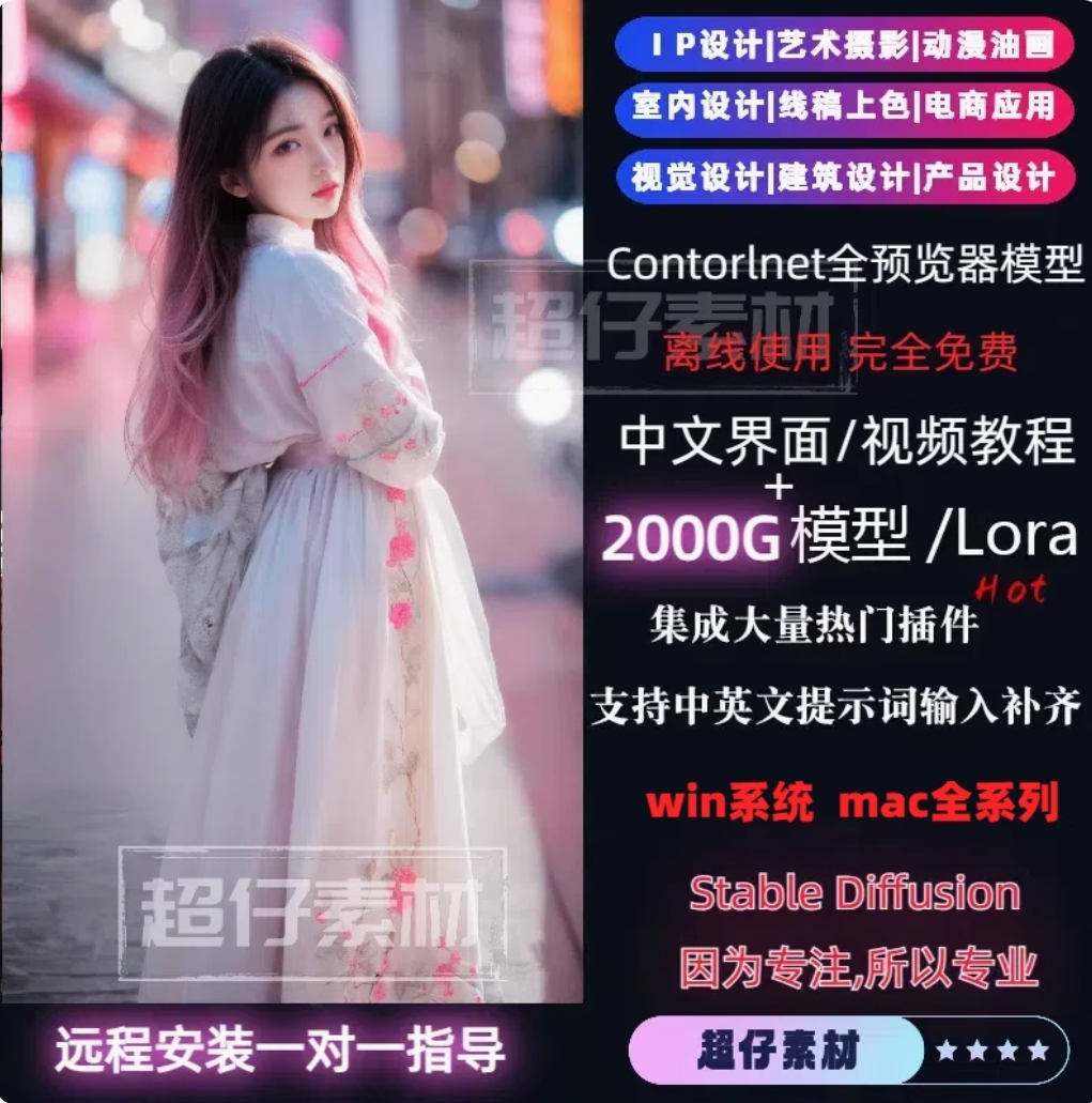 商品名称:ai绘画Stable Diffusion安装整合包中文软件SD远程部署winmac