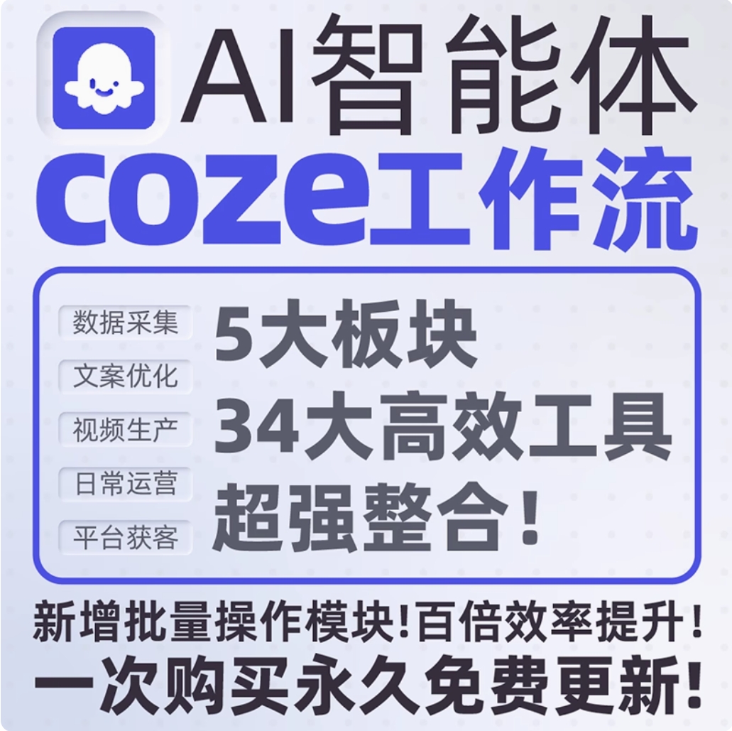 商品名称:coze智能体工作流成品共享空间扣子自动化agnet定制开发一键剪辑