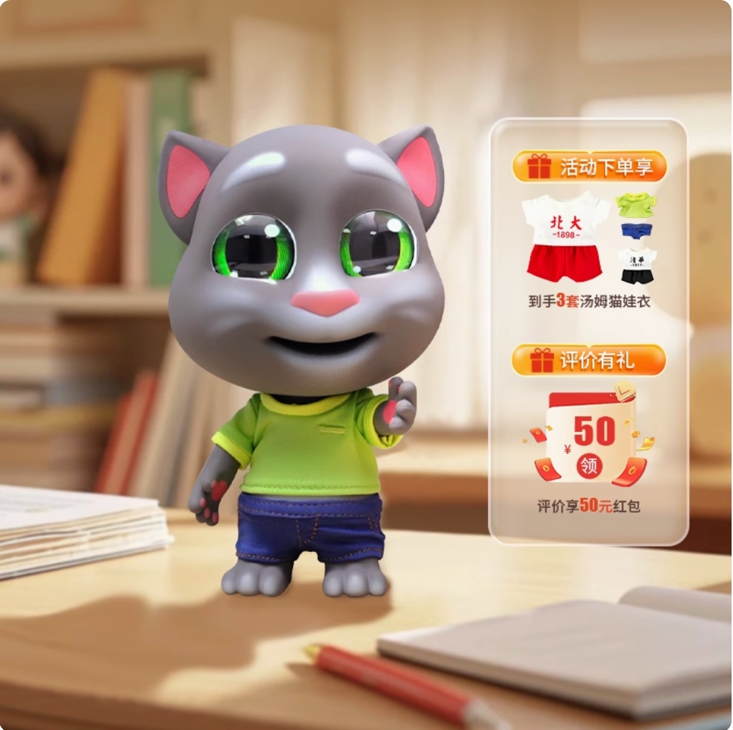 汤姆猫AI大模型人工智能机器人儿童玩具对话互动陪伴交互生日礼物